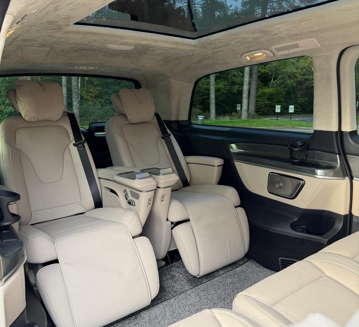This premium vehicle is equipped with state-of-the-art amenities, including free Wi-Fi, multiple phone chargers, a mini-fridge for refreshments, and reclining leather seats, creating the perfect environment for a relaxing and enjoyable journey.